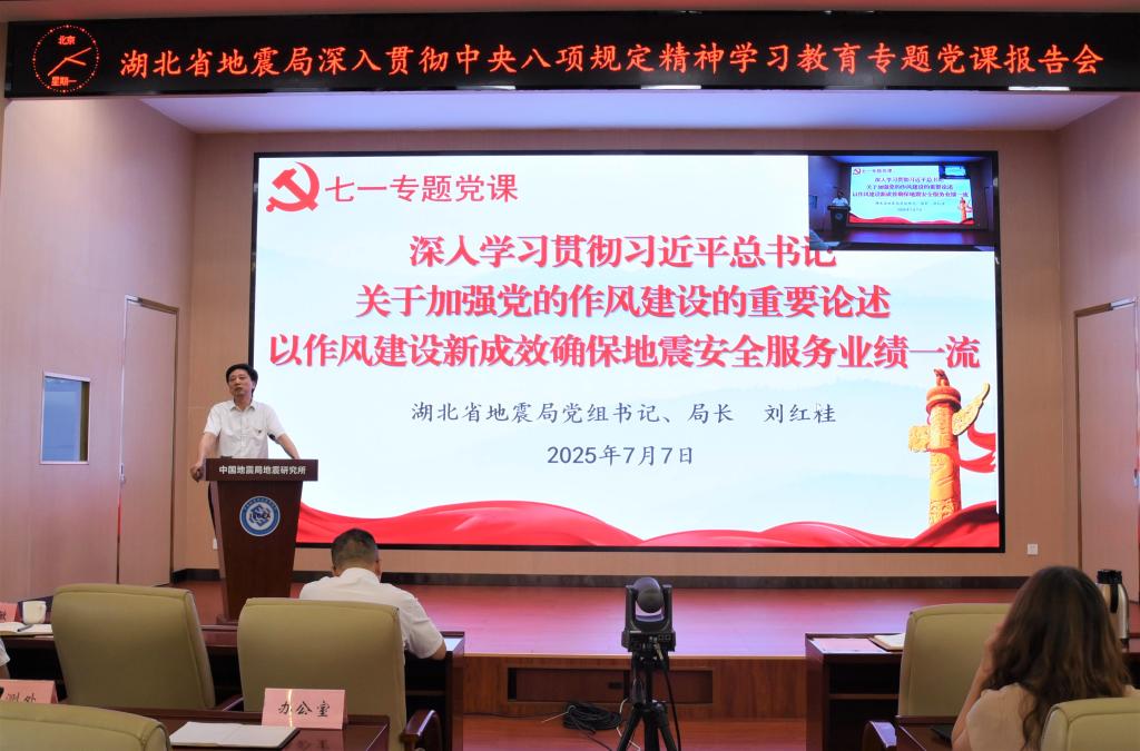 湖北省地震局召开深入贯彻中央八项规定精神学习教育专题党课报告会